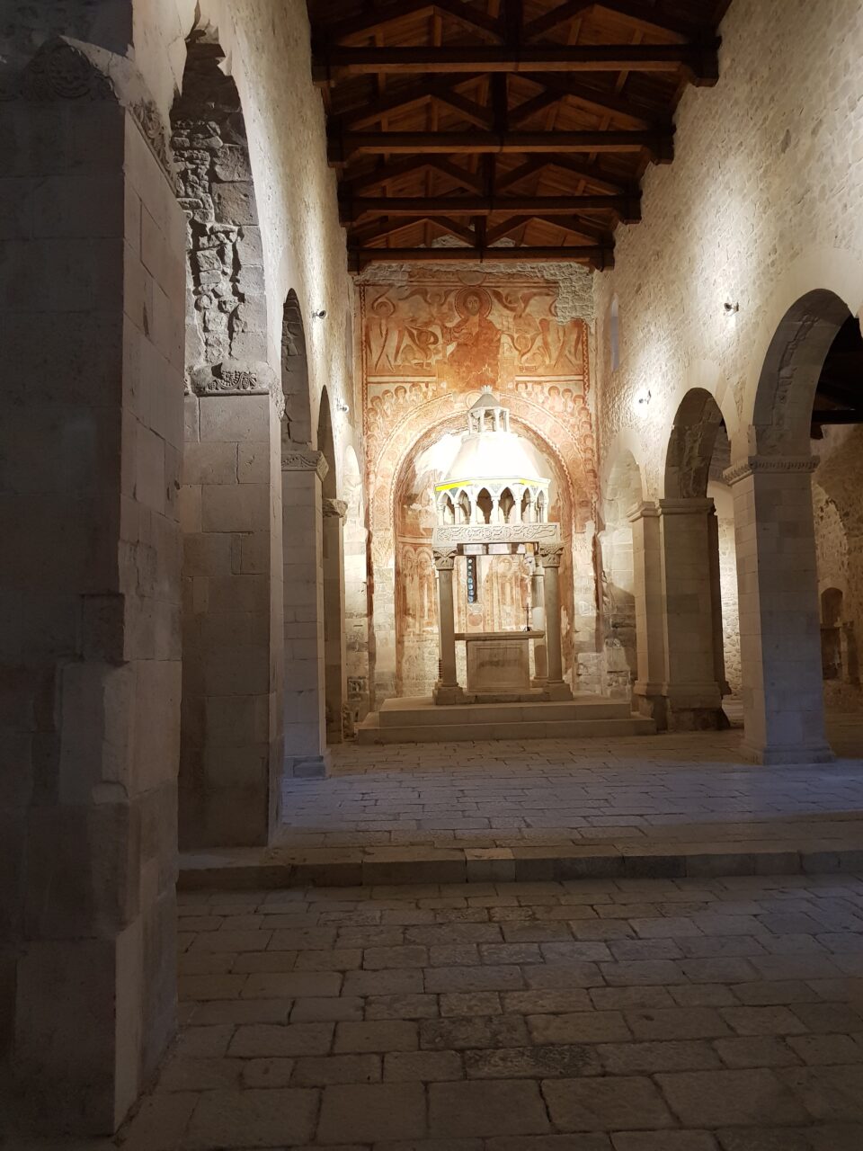 Ma la nostra metà è l’Abbazia di San Pietro ad Oratorium, qui troviamo un gentilissimo custode (la visita è gratuita) che ci illustra qualche particolarità della Chiesa e di quello che erano le parti dove vivevano i monaci.